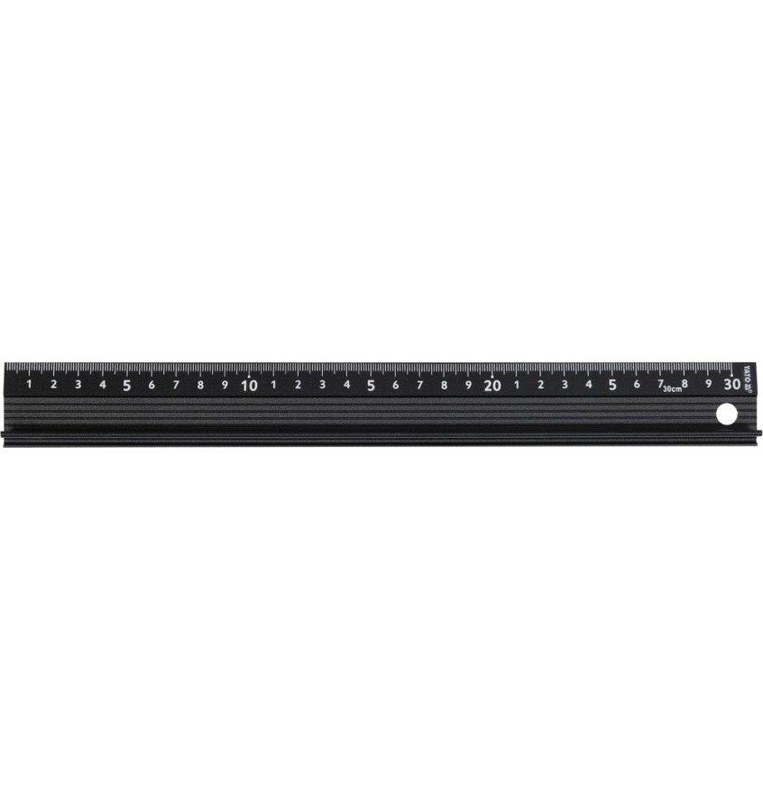 Aluminiowa linijka z profilem w górnej części, służącym jako bezpieczbny uchwyt do trzymania linijki podczas cięcia. Płaszczyzna dolna podklejona jest paskiem pianki, chroniącej mierzony materiał. Dla wygody użytkowania w linijce jest otwór do zawieszania.