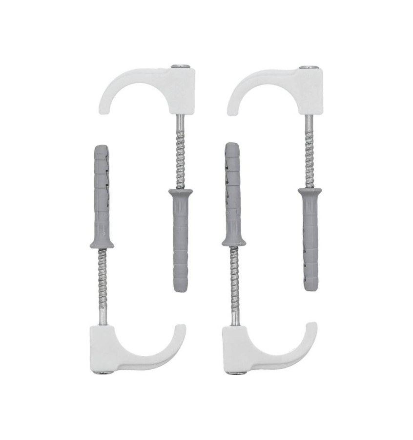 Haki montażowe pojedyncze do rur o średnicy 15-28 mm. Wyposażone w zintegrowany kołek szybkiego montażu (nie wymagają użycia kołków rozporowych), pakowane po 4 szt. Haki do rur miedzianych, stalowych, z tworzyw (PVC, PE, PE-X, PP, PB), mieszanych (PEX/A/PEX, PP-R/A/PP, PEX/A/HDPE), osłonowych, elektroinstalacyjnych i PESCHEL oraz do przewodów pneumatycznych. Zastosowanie przy montażu instalacji na zewnątrz i wewnątrz: wodno-kanalizacyjnych, gazowych, pneumatycznych i elektrycznych. Zaletą jest łatwy i bardzo szybki montaż.