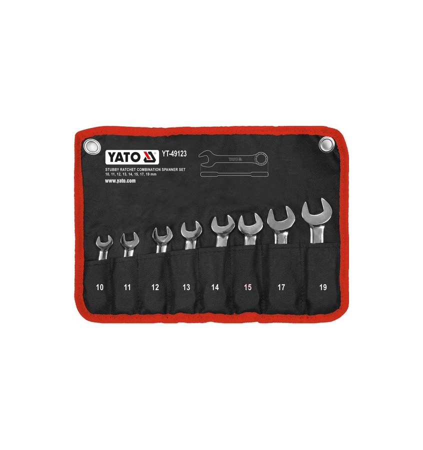 ZESTAW KLUCZY KLUCZE PŁASKO-OCZKOWE KRÓTKIE Z GRZECHOTKĄ 8 części Yato