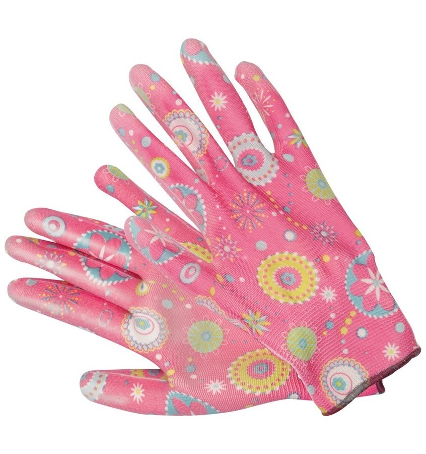 Rękawice ogrodnicze kwiatki - ciemny róż Flo