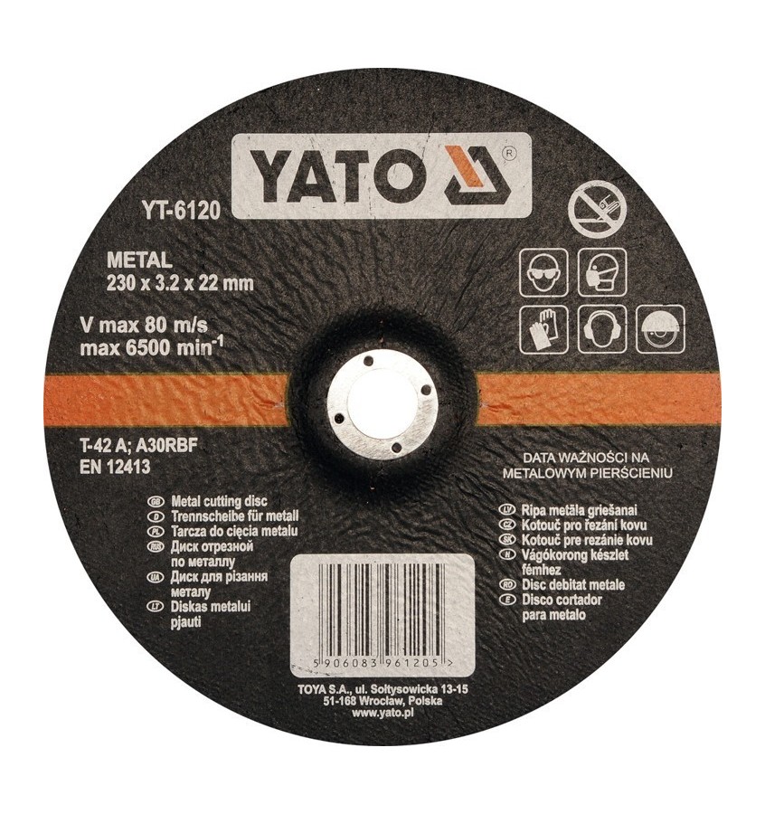Tarcza do cięcia metalu, wypukła 230x3.2x22 mm YT-6120 YATO