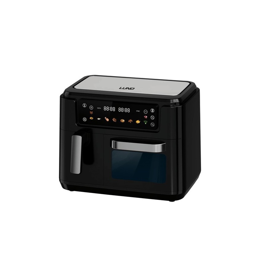 Wielofunkcyjna frytkownica beztłuszczowa z dwoma oddzielnymi misami to praktyczne urządzenie, które zastąpi kilka sprzętów kuchennych, pozwalając przygotować zdrowe i szybkie posiłki dla całej rodziny i gości. Posiada nieprzywierającą powłokę, dzięki której wystarczy odrobina tłuszczu lub jego zupełne wyeliminowanie, aby przyrządzić smaczne i aromatyczne potrawy. Umożliwia rozmrażanie, podgrzewanie, pieczenie, smażenie i grillowanie warzyw, mięs, ryb oraz słodkich i wytrawnych wypieków.