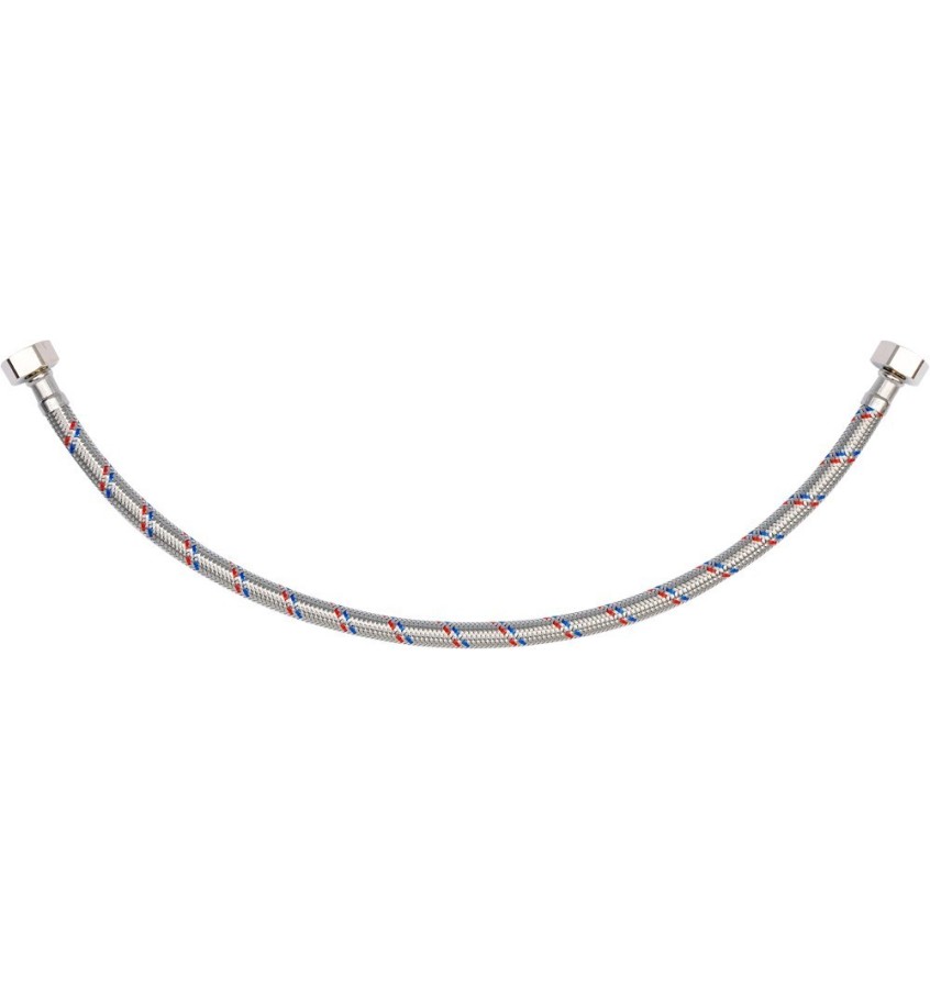 Elastyczny wąż przyłączeniowy w oplocie ze stali nierdzewnej. Przeznaczony jest do wody ciepłej i zimnej. Posiada atest PZH na kontakt z wodą pitną. Długość 500mm. Max ciśnienie 1MPa. Max temp 90st C. Średni przepływ 32L/min. Średnica wewnętrzna 8mm, a zewnętrzna 12mm. Gwint przyłączeniowy: żeński 1/2" x żeński 1/2". Przewód gumowy wykonany z gumy EPDM, przyłącza mosiężne niklowane, uszczelka z gumy EPDM. Przeznaczony jest od podłączenia spłuczek toaletowych czy zaworów.