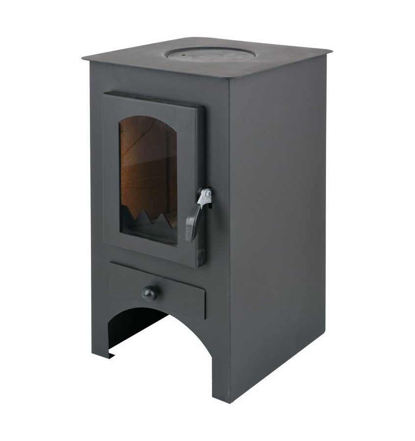 Piec grzewczy o mocy 6 kW. Wykonany z blachy zabezpieczonej farbą żaroodporną. Stalowe drzwiczki z żaroodporną szybą umożliwiają bezpieczny podgląd paleniska. Wyposażony w żeliwny ruszt i palenisko wyłożone szamotem. Piec posiada tylny wylot spalin. Przeznaczony do spalania drewna i brykietu.