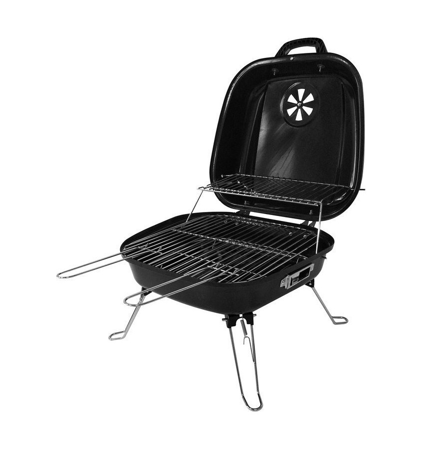 Przenośny grill turystyczny ze składanymi nóżkami umożliwi grillowanie zarówno w domu, na działce jak i na wycieczce. Niewielkie rozmiary ułatwią przechowywanie, przenoszenie i przewożenie. Duży, chromowany ruszt, kratka podgrzewająca oraz aż 2 otwory wentylacyjne zapewnią komfortowe grillowanie