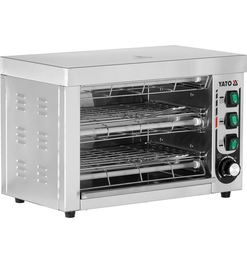 Opiekacz kwarcowy do przygotowywania zapiekanek, grzanek, tostów. Sprawdza się również do grillowania i podgrzewania potraw. Wysoka moc 3000 W zapewnia równomierne opiekanie.
