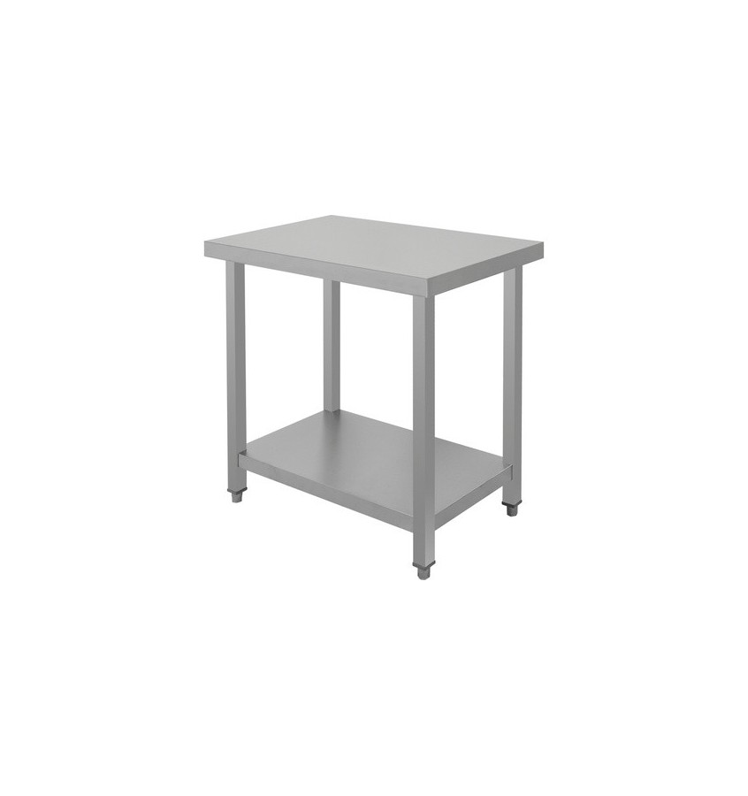 Skręcany stół centralny z półką. Wykonany z wysokiej jakości stali nierdzewnej SS201 przystosowanej do intensywnego eksploatowania w gastronomii. Starannie wykonane połączenia spawane oraz gładkie powierzchnie powodują, że jest bardzo łatwy w utrzymaniu w czystości.
