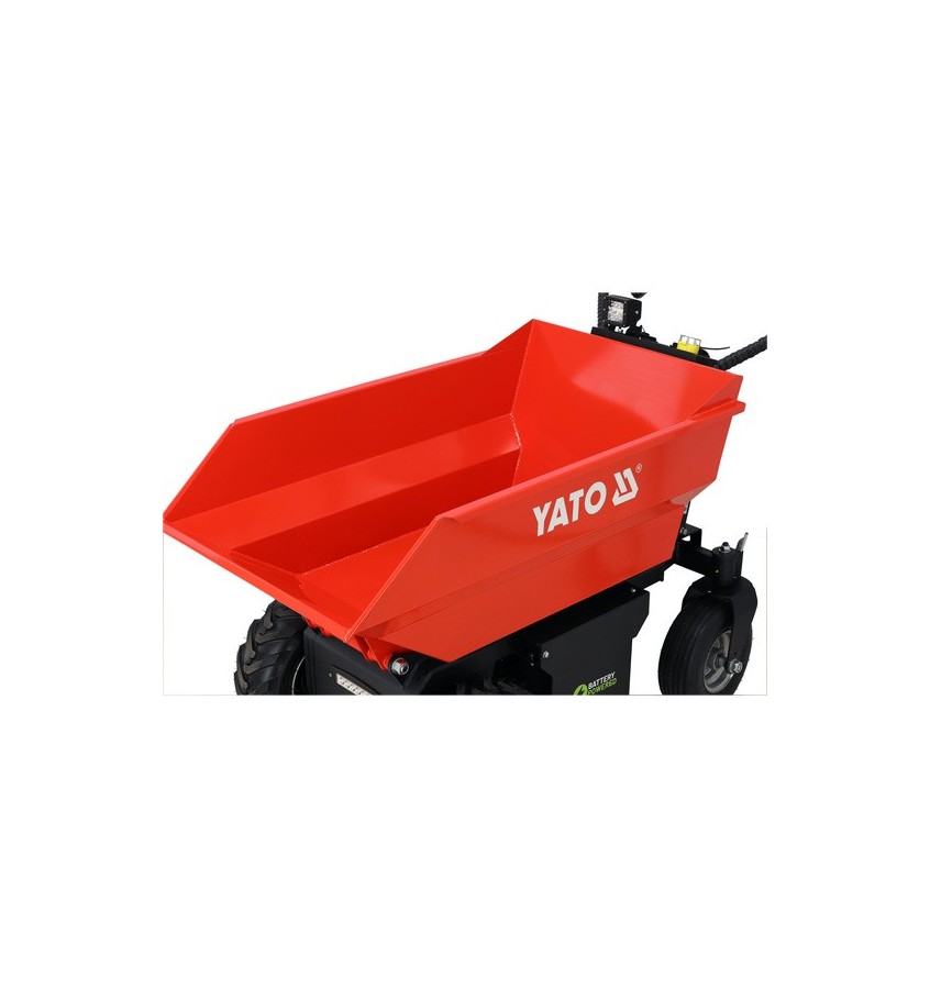 Elektryczne wozidło budowlane to nowoczesne i ekologiczne urządzenie przeznaczone do przewozu materiałów na placach budowy, w magazynach oraz innych miejscach wymagających efektywnego przemieszczania ładunków, w tym w prestrzeniach zamkniętych. Zastosowanie bezszczotkowego silnika prądu stałego o mocy 1000 W zapewnia wysoką wydajność i niezawodność. Układ hydrauliczny umożliwia szybkie i efektywne wywrotowanie ładunku.