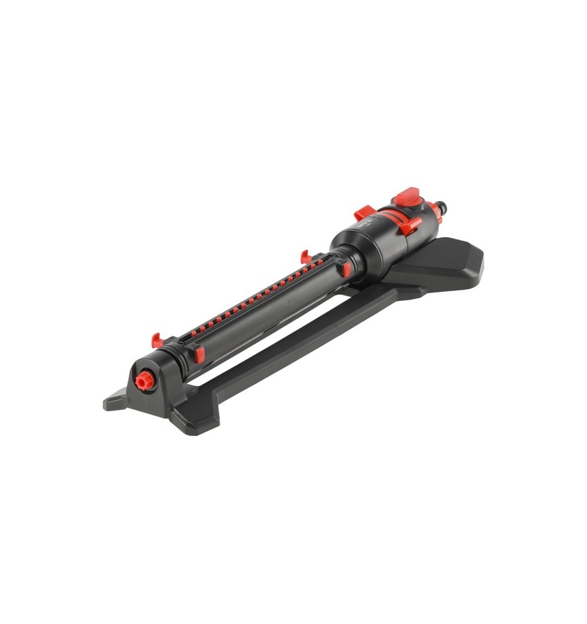 Zraszacz oscylacyjny o regulowanym zasięgu i kącie podlewania, przeznaczony do nawadniania różnych obszarów – od dużych ogrodów po wąskie pasy trawników. Wyposażony w 17 trwałych dysz z możliwością elastycznego ustawiania ich pracy, dostosowanej do potrzeb trawnika, aranżacji ogrodu i ukształtowania terenu.