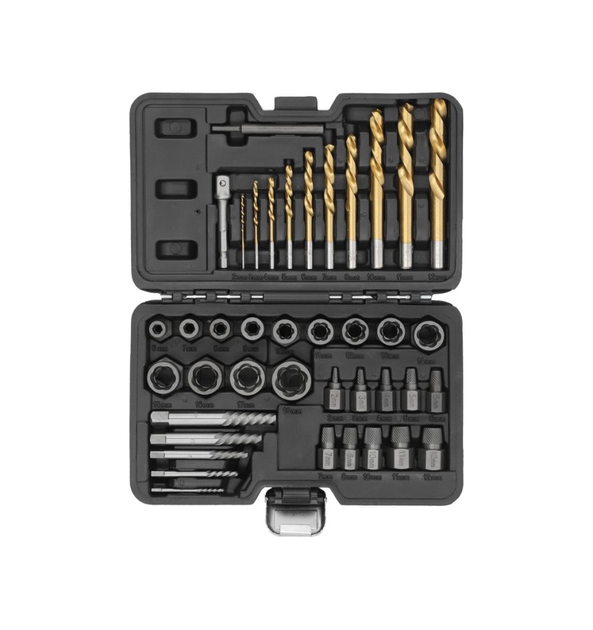 Opis produktu: UNIWERSALNY ZESTAW DO WYKRĘCANIA USZKODZONYCH ZERWANYCH ŚRUB NAKRĘTEK 40 EL