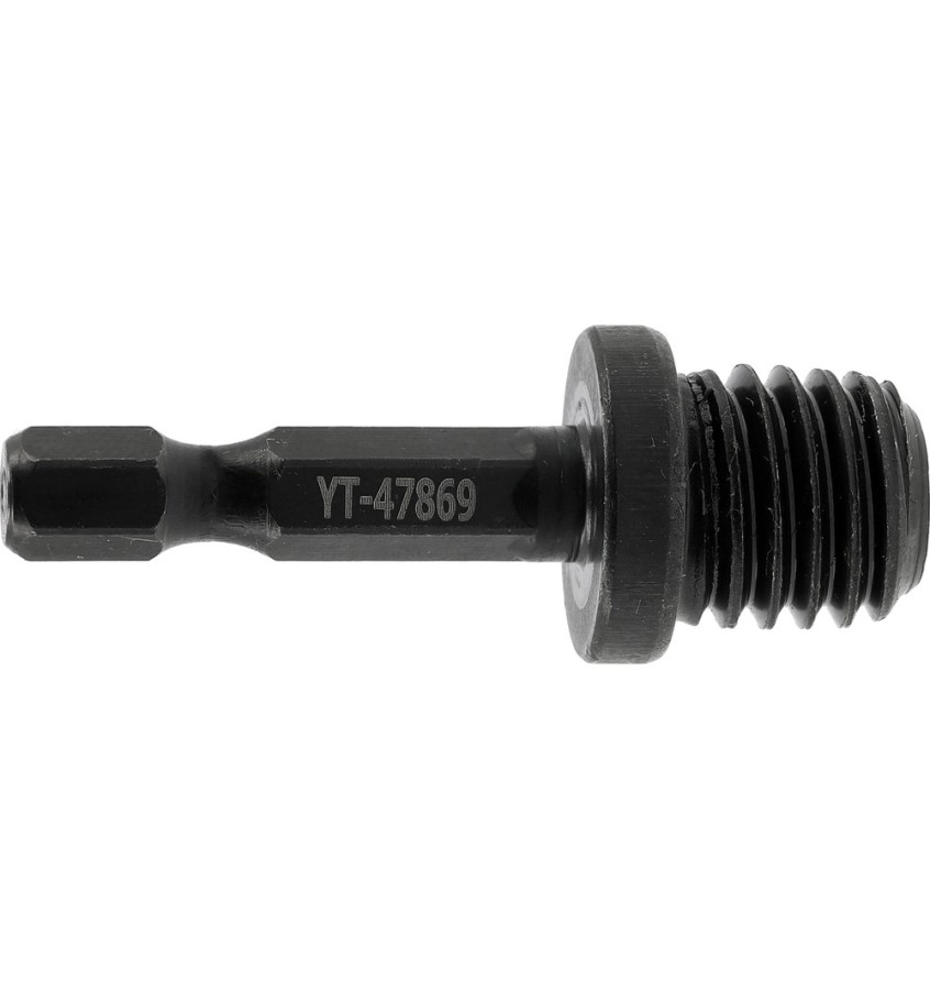 Adapter Hex przeznaczony do mocowania akcesoriów do wiertarki lub szlifierek prostych. Standardowy sześciokątny uchwyt 1/4" umożliwia szybki montaż w typowych uchwytach narzędziowych, a gwint M14 gwarantuje kompatybilność z szeroką gamą akcesoriów roboczych, takich jak podkładki, przystawki, dyski szlifierskie oraz głowice polerskie.