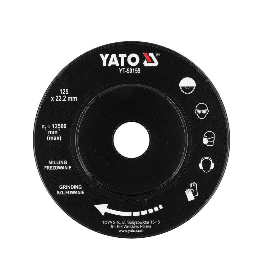Dzięki maksymalnym obrotom 12500 obr./min frez pracuje wydajnie, zachowując przy tym bezpieczeństwo użytkowania. Otwór mocujący 22,2 mm umożliwia wygodne dopasowanie do standardowych szlifierek kątowych.