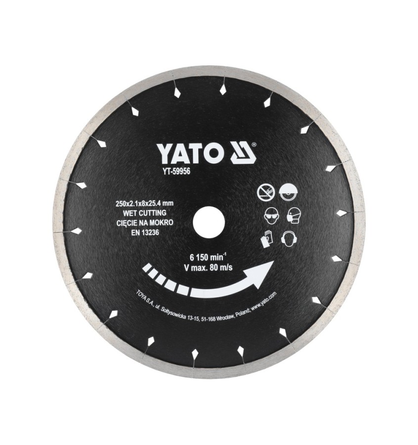 Segment tnący o grubości 2,1 mm i wysokości 8 mm gwarantuje czyste, równe krawędzie bez wyszczerbień. Dzięki średnicy mocowania 25,4 mm pasuje do większości standardowych przecinarek.
