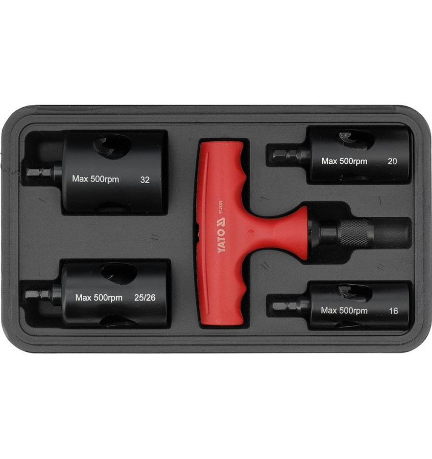 Dodatkowo zestaw może być używany w połączeniu z wkrętarką, co przyspiesza pracę przy większej liczbie obróbek. Zaleca się stosowanie obrotów nieprzekraczających 500 obr./min, aby zachować pełną kontrolę nad procesem kalibracji oraz nie uszkodzić krawędzi rury ani narzędzi.