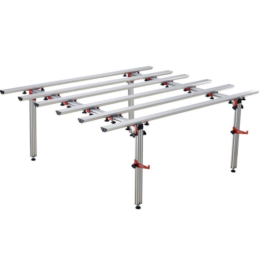 Wyposażony w cztery regulowane nogi, umożliwia łatwe wypoziomowanie na nierównym podłożu, zapewniając bezpieczną i solidną powierzchnię roboczą, niezależnie od warunków. Stół doskonale sprawdza się nie tylko jako stanowisko dla glazurnika, ale także jako uniwersalny stół warsztatowy – do montażu, cięcia czy przygotowania materiałów. To funkcjonalne rozwiązanie dla fachowców ceniących trwałość, mobilność i dokładność wykonania.