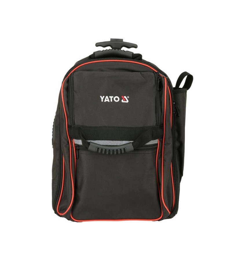 W podstawie zastosowano dwa koła oraz teleskopowy, chowany uchwyt w górnej części, które umożliwiają szybkie przekształcenie plecaka w wygodną walizkę transportową. Takie rozwiązanie odciąża kręgosłup przy przewożeniu cięższego kompletu narzędzi. Szerokie, regulowane pasy nośne dbają o komfort podczas noszenia w tradycyjny sposób, równomiernie rozkładając ciężar nawet przy pełnym załadunku. Opcjonalnie, zamontowane w kilku miejscach, szerokie uchwyty pozwalają na wygodne i ergonomiczne przenoszenie plecaka w ręce.