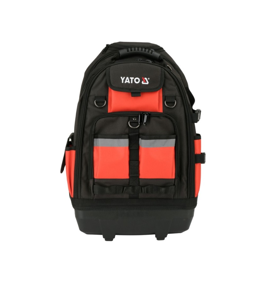 Wymiary 37 x 23 x 57 cm zapewniają przestrzeń pozwalającą na bezpieczne rozmieszczenie elektronarzędzi, akcesoriów i drobnych elementów montażowych. Stabilna konstrukcja z przegrodami, zaczepami i zamykanymi kieszeniami pomaga utrzymać porządek i chroni sprzęt przed uszkodzeniami podczas transportu.