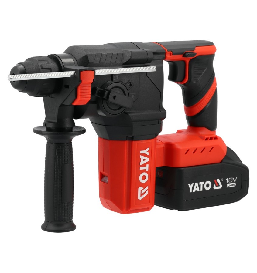 Konstrukcja oparta na zasilaniu akumulatorem Li-Ion 18 V oferuje całkowitą mobilność, długi czas działania oraz stabilność i ciągłość pracy dzięki szybkiemu ładowaniu. Uchwyt SDS-plus umożliwia sprawną wymianę osprzętu, a wbudowane oświetlenie LED ułatwia pracę, szczególnie w szachtach instalacyjnych i słabo doświetlonych pomieszczeniach. W zestawie znajduje się uchwyt dodatkowy oraz ogranicznik głębokości, co zwiększa kontrolę i dokładność podczas wiercenia. Niski ciężar sprawia, że praca ponad głową lub w pozycjach wymuszonych jest mniej męcząca.