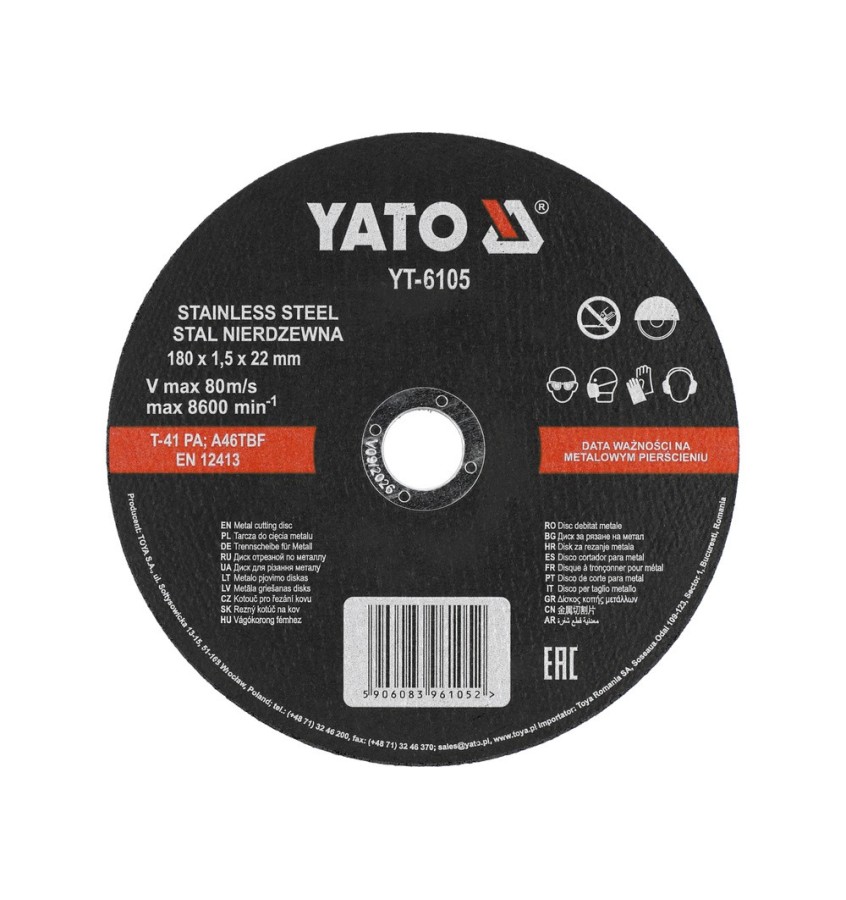 Tarcza do cięcia stali nierdzewnej 180x1,5x22 mm YT-6105 YATO