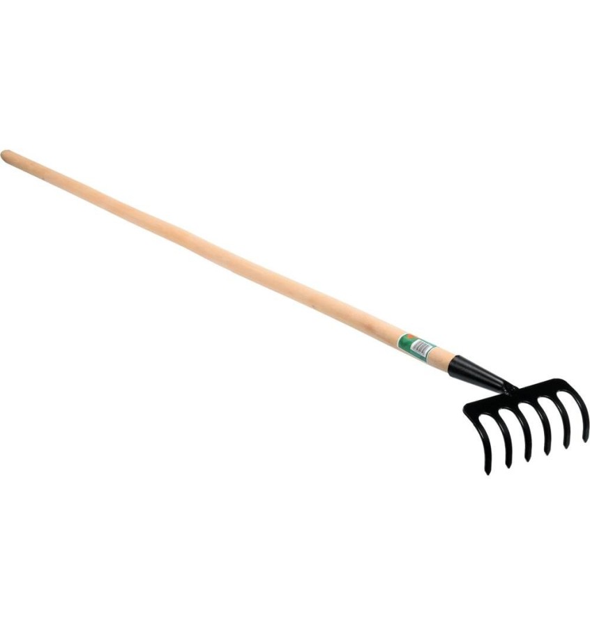 Grabie metalowe 6 zębów z trzonkiem drewnianym 35740 Flo